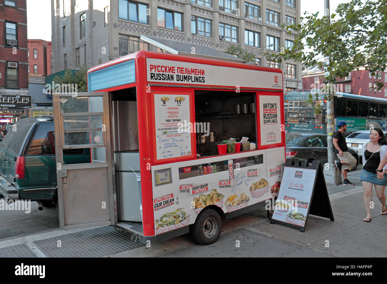 A Street Food Van Selling Russian Dumplings In New York City United States Stock Photo Alamy